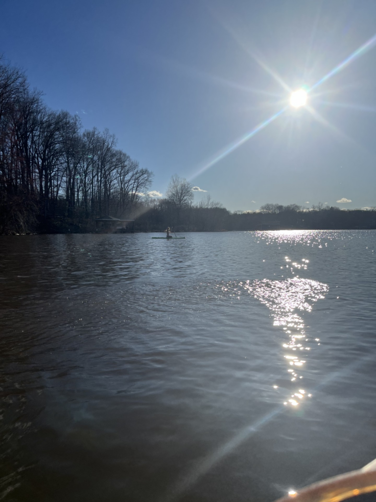Over spring break, I spent a couple of peaceful hours paddleboarding with friends on Lake Anna. The water was calm, and it was a fairly warm day. Being on the paddleboard made me feel weightless but grounded at the same time. Every small shift in my body was mirrored by the board beneath me. That physical responsiveness made me more aware of the environment than I often am on land. The water held me up, but I had to meet it halfway.